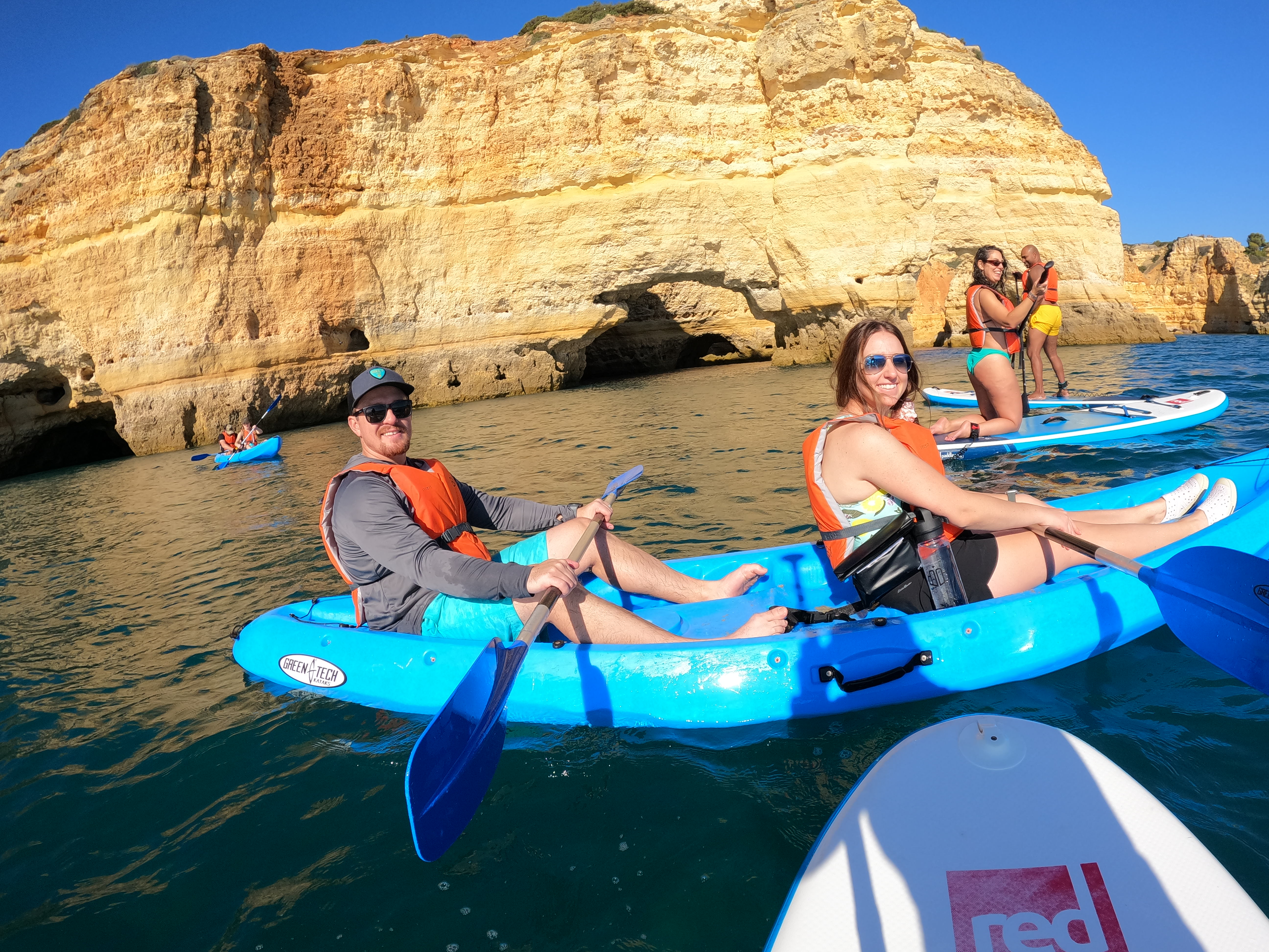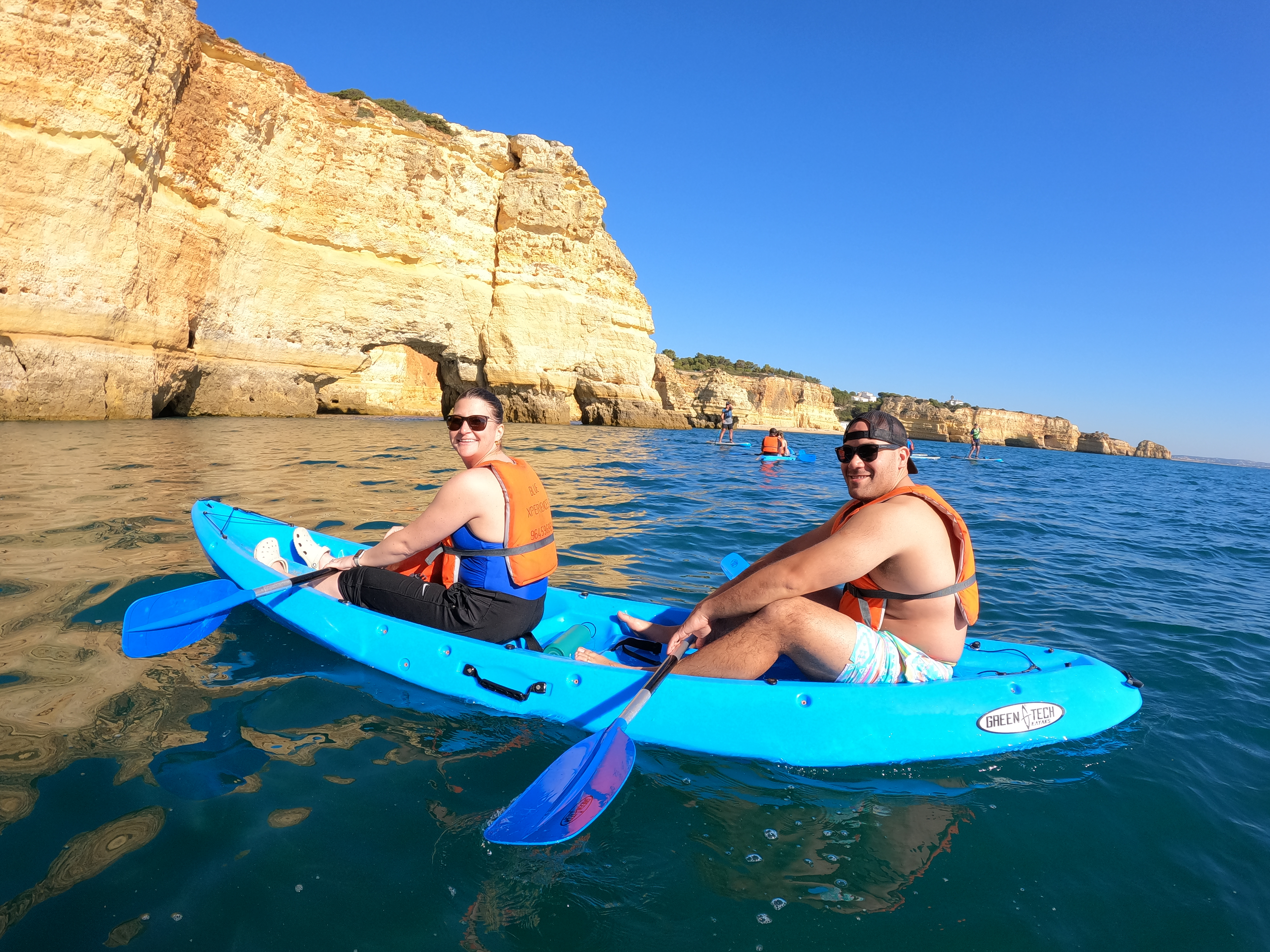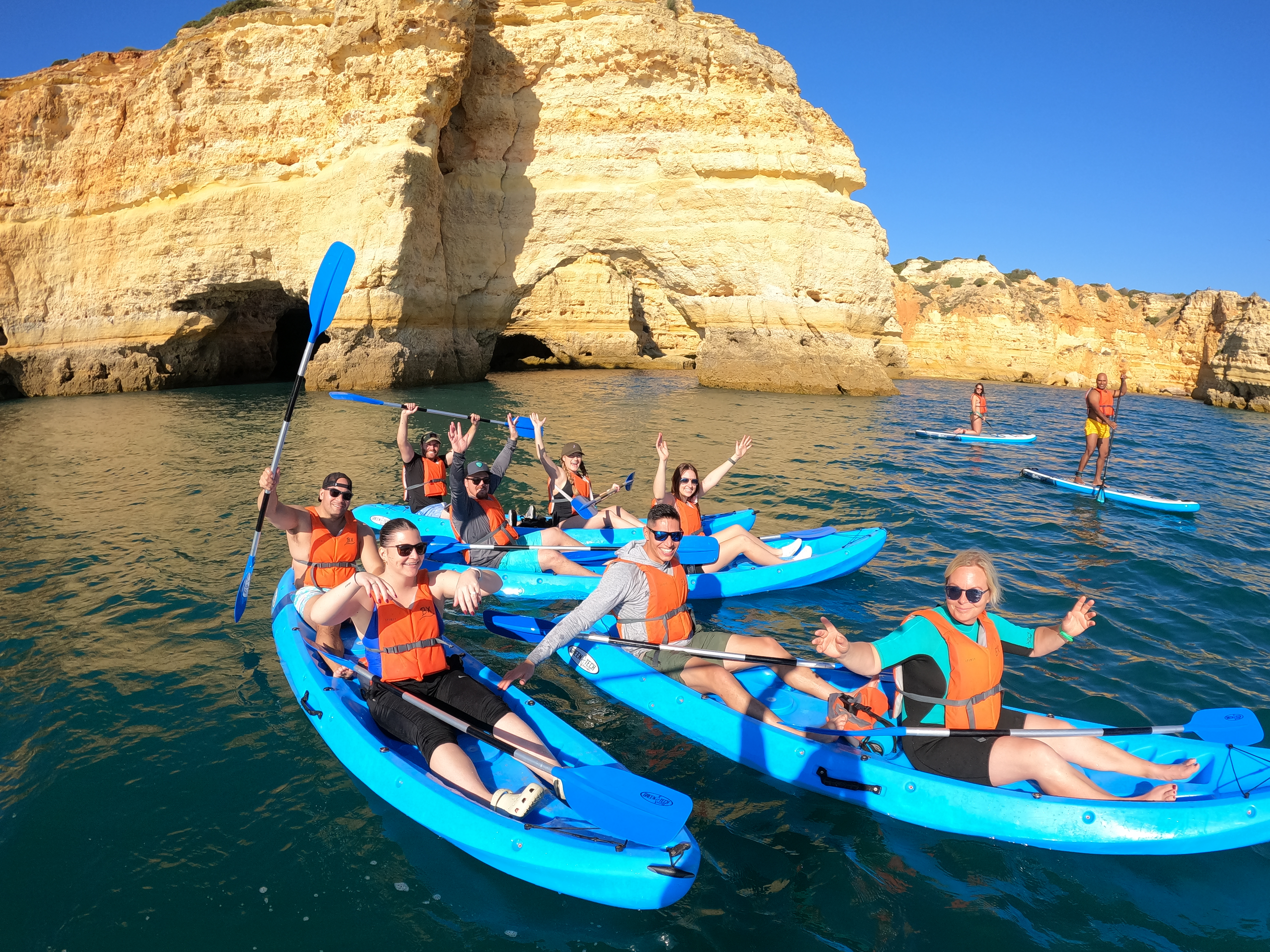 The Blue Xperiences SUP & SURF, a family-owned company in the Algarve, invites customers to explore the best of the region. Located in Armação de Pêra, a popular destination, we offer unique experiences of Stand Up Paddle (SUP), Kayaking in the Benagil Caves, and surfing lessons at the award-winning Praia de Armação de Pêra.